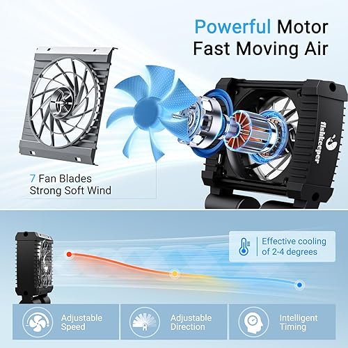 ✦【5 Fan Speeds Control】 Engineered with waterproof external controller, 5 wind speeds allow you to easily and flexibly adjust the fan air volume - from gentle summer breezes to robust heat wave defense, to meet different needs of various aquatic pets in seasons and temperatures.