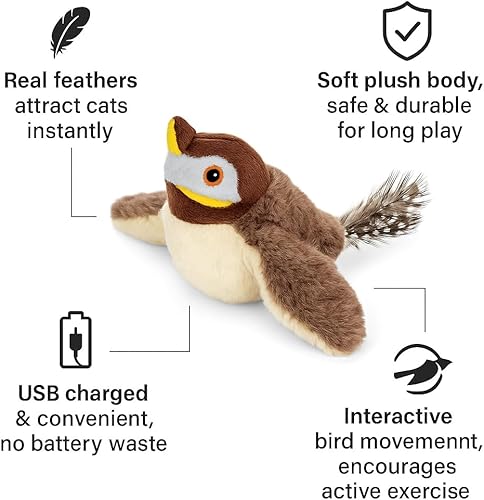 [USB Rechargeable & Eco-Friendly] No more battery hassle. This flappy bird cat toy includes a USB rechargeable battery, offering long-lasting fun in an environmentally friendly way