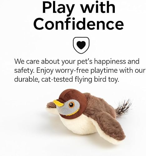[Soft, Durable & Safe Materials] Crafted from non-toxic plush fabric and soft feathers, this chirping bird cat toy is gentle on paws and teeth – perfect for kicking, pouncing, and cuddling.