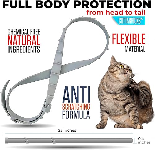 Increased Efficiency: The COTTARRICKS Cat flea collar enjoys an improved formula which works against a wide variety of ticks, fleas and eggs. Unlike similar products on the market, this collar acts by preventing the tick from biting, instead of killing it post-bite, contributing to a better protection of your pet!