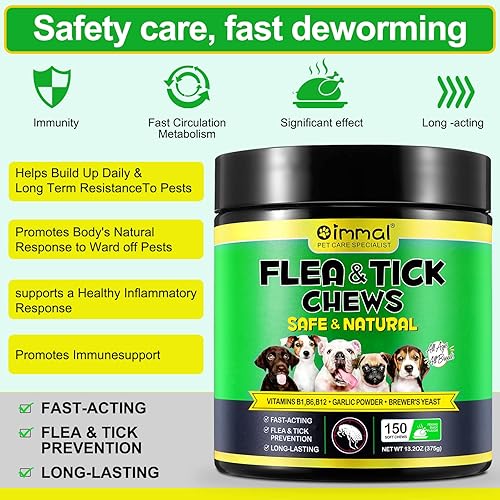 Safe & Natural - The tick and flea treats for dogs formulated by natural ingredients, no added sugar, wheat, corn, GMOs or preservatives. It's safe for all breeds and ages dogs, whether a tiny yorkie or a large labrador.