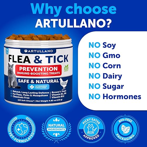 Quality Ingredients for Protection: Formulated with flea prevention for cats in mind, these chews contain Vitamin B1, B6, and B12, along with Brewer's Yeast, which naturally supports skin and coat health.