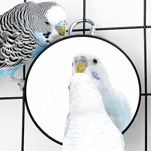 【SUITABLE FOR】Bird mirror large encourages them to keep busy by interacting with their own reflection and is suitable for parakeets, parrot, cockatoos, cockatiels, conures, budgies , lovebirds and other small-medium birds.