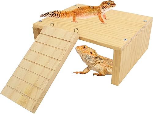 Reptiles Hideout Wooden: Give your reptile comfort and security with the wooden hideout! Reptile hide house is suitable for various reptile such as bearded dragons, lizards, turtles, geckos, hamsters, guinea pigs, chinchillas, chameleons, and more.