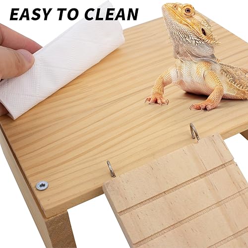 Reptile Platform With Ladder: Our bearded dragon platform with climbing ladder can reduces boredom, but also helps relieve bad moods, the perfect reptile toy for hiding, resting, and playing.