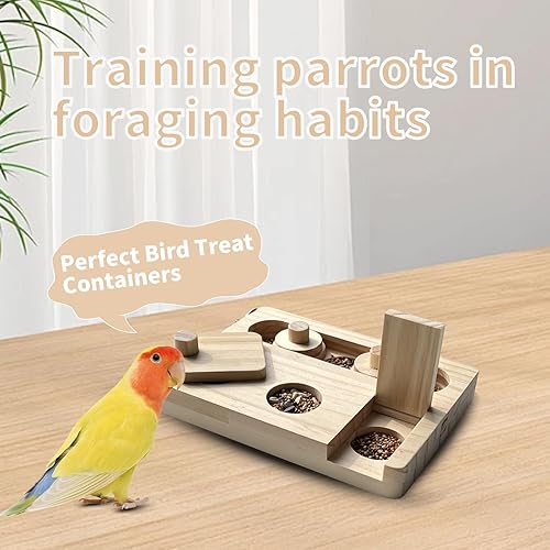 Best Feeding & Training Toys: The parakeet toy can hold different kinds of food, and the open the lid and slide block design makes this wooden enrichment foraging toy a fun training toy, and also increases the interaction between owner and parrot for better closer.