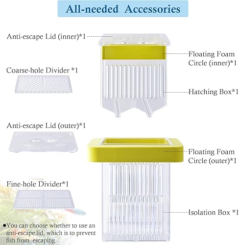 【Easy Installation & Use】:The fish breeder box for aquarium comes with secure suction cups for firm attachment inside the aquarium. Simple to set up and remove, making it convenient for both beginner and experienced fish keepers.