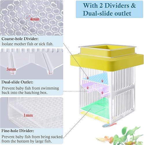 【Multi-Functional Breeding Box】:This fish breeder box for aquarium works as a hatchery incubator, isolation box, and nursery, providing a safe and controlled environment for fish hatching, isolating and rearing.