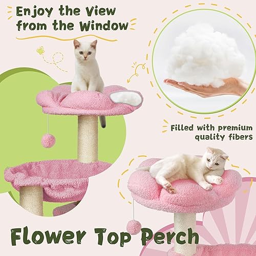 All-aroundRrelaxing Life: The top floral perch allows kittens to lounge in softness all day long and enjoy the view out the window. This cat tree has two hammocks at different heights providing even more places to relax. The cat condo in the center gives kittens plenty of security.
