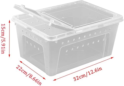 Reusable and Durable: The Reptile Feeding Hatching Container is made of PP material, smooth surface with no burrs, light weight, and easy to carry. It is about 12.6" x 8.66" x 5.9" / 32*22*15 cm (length*width*height), with enough space for reptiles to move around. It is ideal for transport, temporary housing, good solution for reptile transpor
