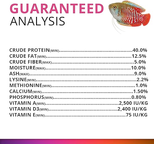 Slow sinking granule format (5-7mm) – all fish can feed at their preferred depth; feed as much as fish can eat in two minutes, two or three times daily