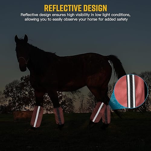 Reduced Stomping:The breathable mesh design helps shield against flies,reduce stomping and kicking so your horse can move freely and safely with the fly boots