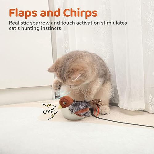 Interactive Flapping and Chirping: This innovative cat bird toy is designed to simulate the movements and sounds of a real bird. With its interactive flapping and chirping features, it engages your cat in stimulating play sessions,your cat will be entertained for hours, providing endless fun and enjoyment