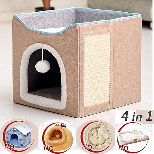 Easy Care and Assembly cat bed : This cat Beds for indoor cats can be quickly assembled or folded flat for easy storage and travel. Portable and lightweight cat house. The removable cushions feature reversible, machine-washable covers that provide all-season comfort.