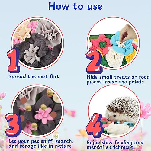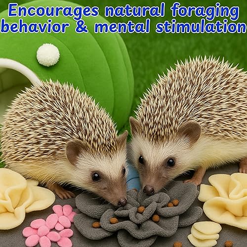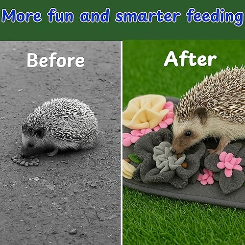 Boost mental agility & natural instincts: Unleash your hedgehog's innate curiosity with engaging foraging mat, toys for hedgehogs, foraging mat for bunnies, snuffle mat for rabbits. By hiding treats within its floral patterns, you'll encourage their sniffing and problem-solving skills, transforming mealtime into a stimulating game. This daily mental workout helps reduce boredom and prevents destructive behaviors, leading to a happier, more well-adjusted pet and a more peaceful home for you