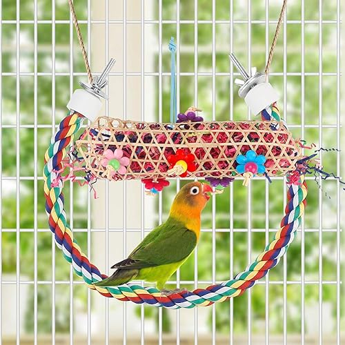 【Easy to install】: All bird cage accessories toys come with a hook which can attach to the bird cage simply can provide hours of fun every day.Save space and a good decoration of your bird cage.Nice for small to medium birds,such as small parakeets, cockatiel, conures, macaws, parrots, love birds, Mynah, finches ,pineapple and so on.