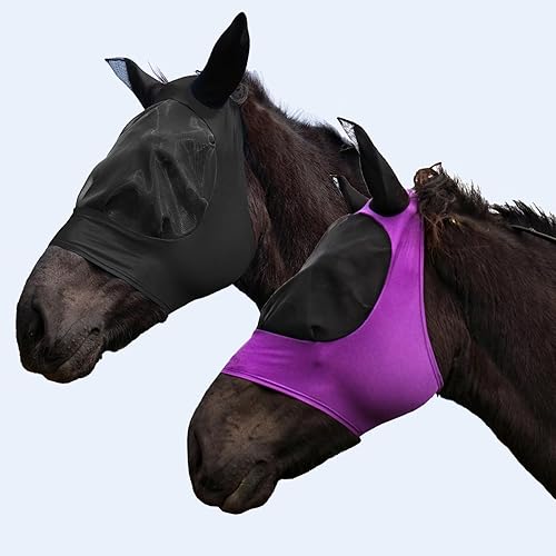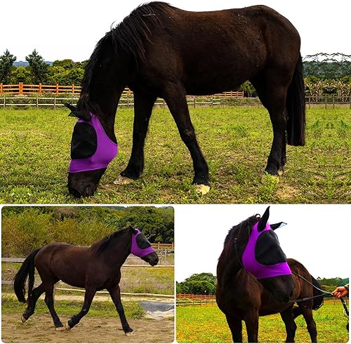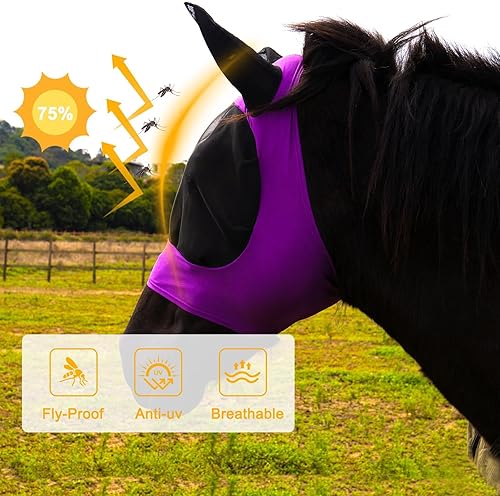 COMFORTABLE TO WEAR: Our equine fly masks are made of 88% polyester and 12% spandex fabric, with a soft-fitting elastic design that ensures a secure hold and a comfortable, non-tight fit, while allowing the horse to move naturally and remain visible.