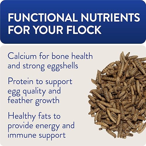 PACKED WITH NUTRIENTS: The whole dried BSFL in FREEDOM FLY are packed with nutrients for poultry, including calcium, protein, and healthy fats. Calcium supports a bird’s bone health and strong eggshells. This sustainable source of protein supports egg quality and feather growth, and healthy fats provide energy and immune support.
