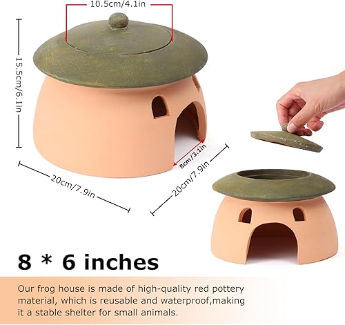 High quality red pottery material: Our frog house is made of high-quality red pottery material that is sturdy and smooth; This ensures durability and longevity, allowing the house to withstand different weather conditions throughout the year and provide unwavering shelter for these frogs and toads throughout the four seasons