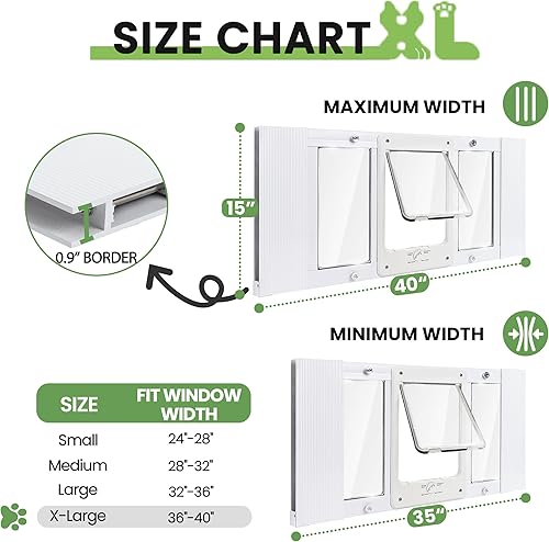 【PURCHASE GUIDE】Suitable for sash windows with a width of 32"-36".Flap size: 7.8"W ✖ 10.6"H. Door frame height: 15". Door frame thickness: 0.9".Before purchasing, please make sure to measure the window width according to the provided method. Otherwise, the purchased product may be too large or too small, making it unusable.