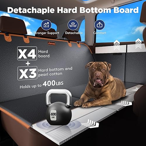 【More Stable and Sturdy Frame】3 sturdy removable load-bearing plates and pearl cotton are built in the bottom, and 4 removable load-bearing plates are built in the side. Our back seat dog seat cover has a durable and thickened hard bottom, which can withstand up to 400lbs, suitable for large dogs or multiple dogs. The four-sided padded hard boards makes the whole frame more stable, no need to worry about the side collapse anymore, and the car side door is fully protected.