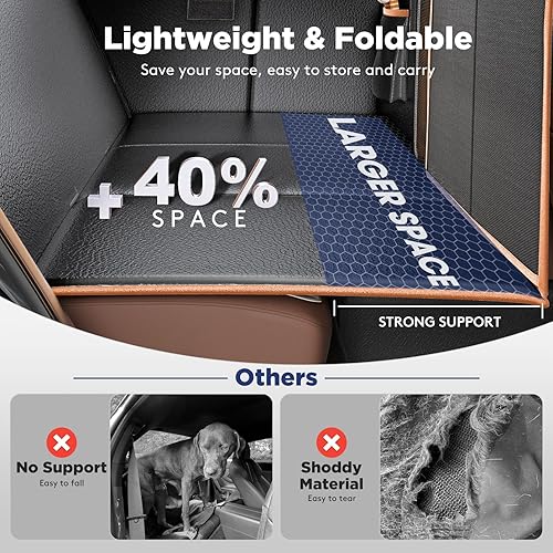 【Increased 40% Back Seat Space】This dog car seat cover extends 40% space in the back seat, creating a comfortable car bed for your dog. Whether it is a long-distance trip or daily travel, it can provide a wider rest area for your pet. Its large space design is suitable for dogs of all breeds, making your dog feel more comfortable during the journey and accompany you to enjoy every trip!