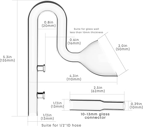 Package include skimmer lily Inflow pipe, outflow pipe, 10-13 glass adapter and spring brush. 10mm to 13mm glass adapter allows user connect with 12mm hose ID 9mm hose ID.