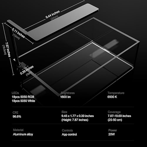 Full Spectrum WRGB: The Aquarium led light features 18pcs RGB LEDs and 18pcs White LEDs, providing a full spectrum of light. Each color channel can be independently controlled, enabling you to customize the lighting to suit your plants' needs and create vibrant, dynamic displays in your aquarium or terrarium.
