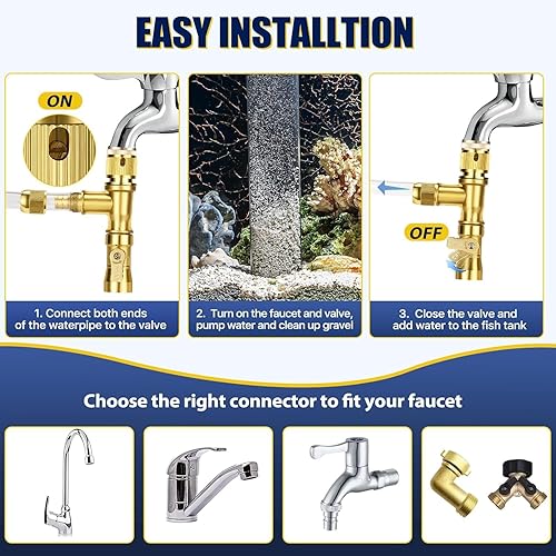 【No Buckets, No Spill, No Noise】Easy to install and simple operation, no bucket required, the dirty water in the fish tank is drawn out under the pressure of tap water, After the drain is completed, just switch the valve to add water.