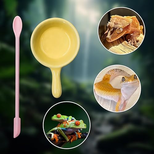 【Gecko Accessories】: This ceramic food bowl with a silicone spoon is specifically designed for your gecko, making feeding time simpler and more enjoyable. Ideal for Crested Geckos, Leopard Geckos, and other small reptiles.