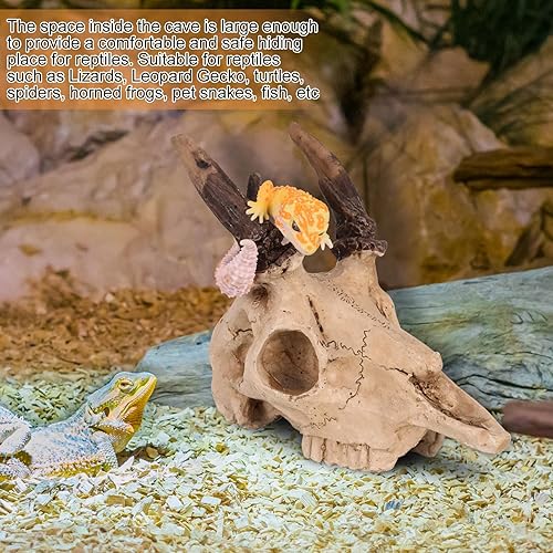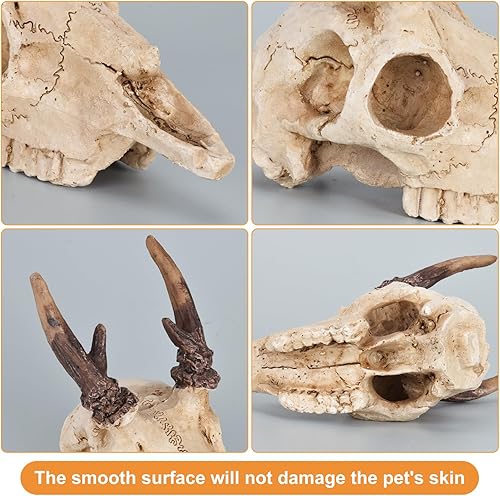 4.HAND-PAINTED SURFACE: Leopard gecko aquarium tank accessories, make the elk skull in a more realistic state into your desert, rainforest, mountain, and other types of breeding tanks, so that your pet will not be overly frightened by the new environment.
