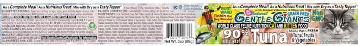 Comment on "Gentle Giants Tuna Wet Cat Food, 3 oz., Case of 24, 24 X 3 OZ"