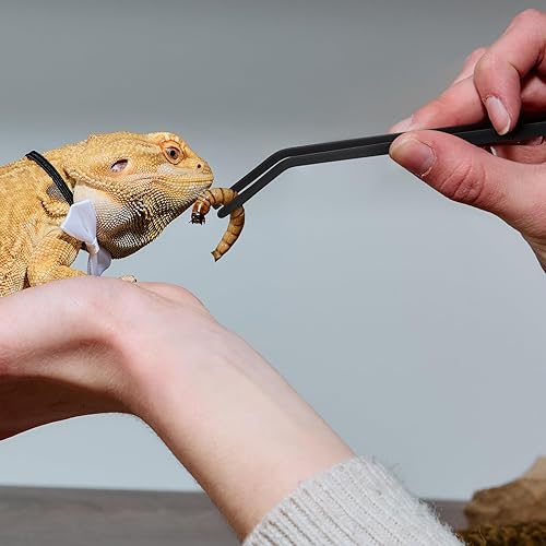 Safety First Feeding Experience: designed for worry free feeding, these bearded dragon feeder come with a secure lid that effectively contains insects to prevent them from escaping and becoming a nuisance, premium acrylic construction and stainless steel tweezers provide a reliable feeding solution for your pet