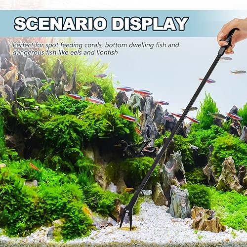Keeps Tanks Clean: our fish feeding tongs are an ideal aid in maintaining the cleanliness of your aquarium, with their long length and claw design, reaching deep down to remove decayed leaves, uneaten food, or any debris becomes easy; The plastic material ensures the tool doesn't harm the tank dwellers while cleaning