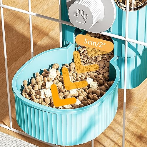 Two ways to use :automatic pet food dispenser can not only be attached to the pet carrier, effectively saving space, but also can be placed on a flat ground. All you have to do is set the cat feeder and water fountain at the correct height and attach the feeder to the cage with a swivels. The flat-bottomed rabbit feeder is firmly anchored to the ground and can be placed anywhere you want