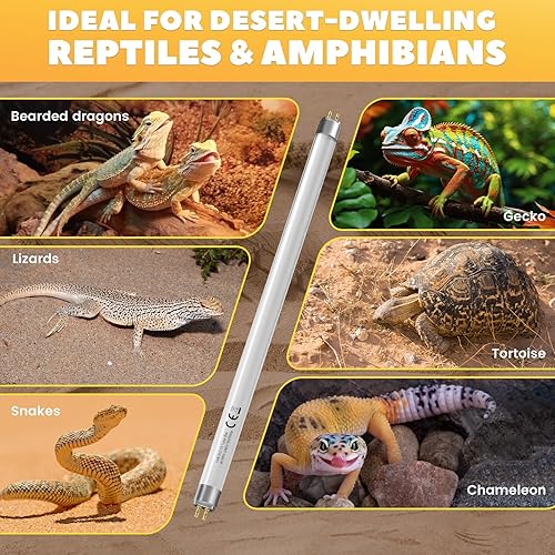 Versatile for Multiple Species - The T5 10.0 uvb bulbs for reptiles is ideal for desert-dwelling reptiles and amphibians, including bearded dragons, lizards, geckos, snakes, tortoises, chameleons, frogs, and turtles. It delivers the necessary UVB light conditions to support their growth and overall health.