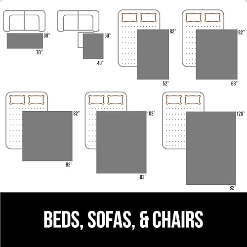 BEDS, SOFAS, AND CHAIRS: blanket measures 30” x 70”; available in many sizes for all spaces; sizing aligns with bed and sofa sizing for a perfect fit; machine wash and dry