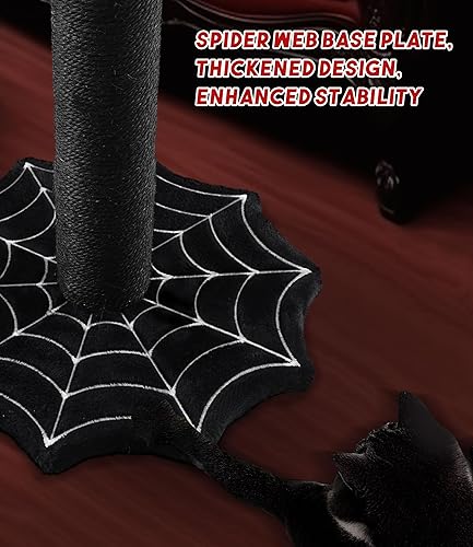 【PuzzlePaw Gothic Cat Scratching Post】:Gothic design with unique appearance,featuring a spider web base and spider toy that adds a touch of dark elegance to your home decor.This unique appearance sets it apart from ordinary scratching posts, making it a stylish centerpiece in any room.
