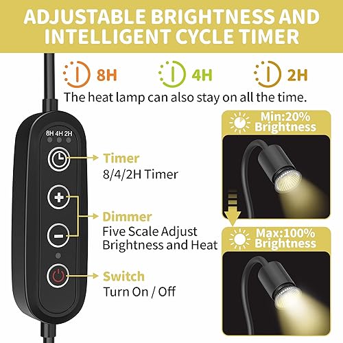 【Easy Installation】Our reptile lamp is designed for ease of use. Simply select the optimal location and secure the clip to ensure the fixture is firmly attached and aimed at your pet's preferred basking spot.