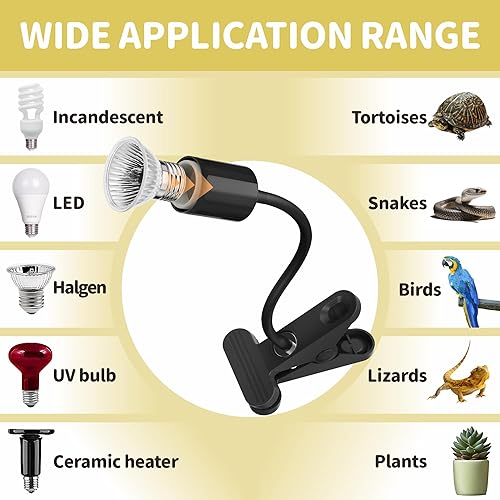 【Wide Application Range】The turtle basking light is suitable for a wide range of animals, including reptiles, tortoises, lizards, snakes, spiders, birds and amphibians. It can also be used with standard E27 bulbs to provide lighting for indoor plants, art studios, bedrooms and other indoor spaces.