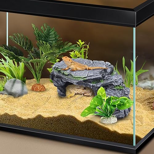 【REALISTIC ROCK FORMATION】GOZILLA hideout imitates the nature of rocks, lifelike platform provides more real natural environment for your pet to bask and warm up.Package includes turtle basking platform, artificial large plant*1 and small plant*1.