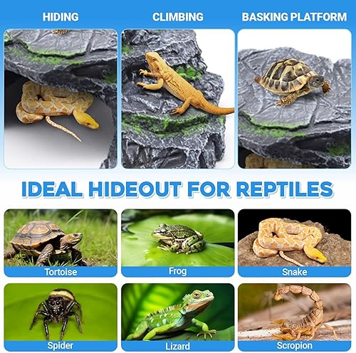 【SAFE MATERIAL】Reptile hidout is made of high quality non-toxic harmless resin material, durable and won't fade, They're absolutely safe for reptile, fish and best of all. Also,it is apply to salt and fresh water.
