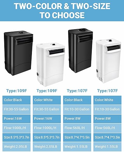 【POWERFUL PERFORMANCE】Compare to most fish tank filters, GOZILLA turtle water filter features an 8W motor with a robust flow rate of 560L/H ensuring smooth operation and efficient filtration for your aquarium, while maximizing the available filtration space. Package includes: 1*107F Filter, 1* filter box and 1*filter cartridge.