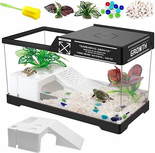 [UPGRADE SIMPLE DESIGN] Our aquarium tank is upgraded for use with both reptiles and small fish, and are capable of holding deep water. They are suitable for all small aquatic and reptile animals.You just need to add decorations to make a complete tank kit.