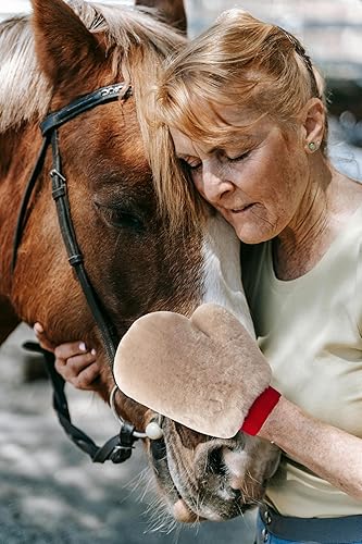 【Premium Horse Grooming Supplies】- This double sided lambswool horse brush glove is manufactured genuine sheepskin. Which is soft and comfortable to grip, is perfect for gentle grooming, ideal for legs, face, ears, and body cleaning