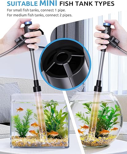 Perfect for Small/Mini Tanks: Our aquarium cleaner is suitable for meticulous cleaning in larger aquariums above 10 gallons of water, as well as ideal for aquarium water changes and fish tank cleaning in tanks under 10 gallons of water. Its compact size ensures efficient cleaning, whether it's your mini tank, nano tank, betta fish tank or turtle tank.