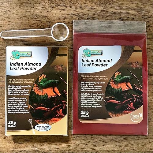 Beneficial for Aquarium Fish - Indian almond leaf powder, derived from the Terminalia catappa tree, has immune-boosting properties that help protect fish from issues like fin rot and skin problems. It also contains tannins that aid in wound healing and help balance the water’s pH, creating an ideal environment for your fish. Additionally, minerals are added to support fish health. **These minerals are blue in color, and while you may notice a slight blue tint when mixing them into the water, the color will disappear.**