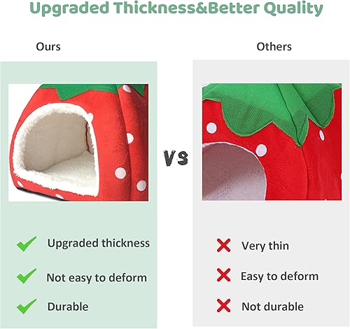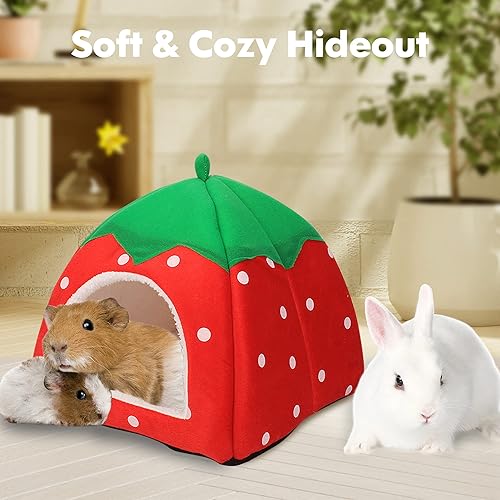 【Warm & Cozy】 The small animal bed or hideout comes with a removable pee pad inside, and the non-slip bottom ensures it stays in place. With the super soft plush fabrics, your little furry friends will feel cozy and warm inside their little house. Suitable for small animals such as Rats, Chinchillas, Ferrets, Guinea Pigs, and Dwarf Rabbits etc.