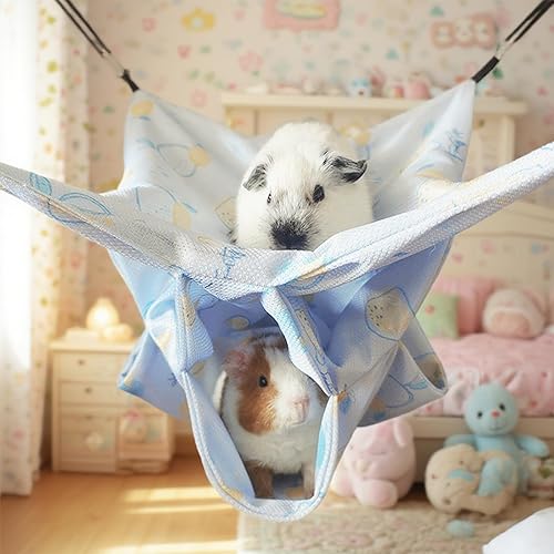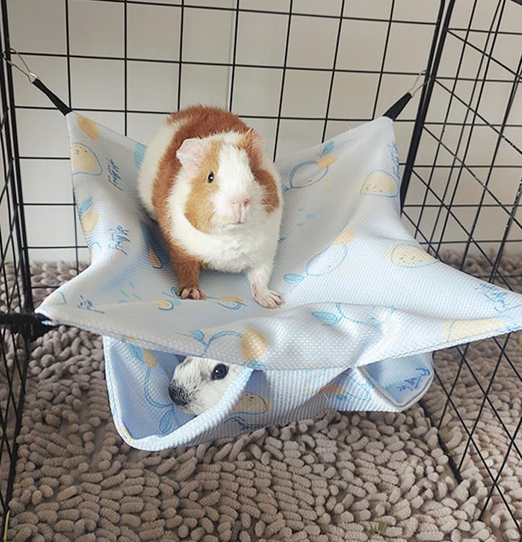 3-Layer Breathable Hammock:Three-tier design offers climbing and lounging spaces for guinea pigs, hamsters, or chinchillas. Soft blue fabric keeps pets cool in summer.