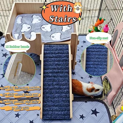 ✅【Stairs with Anti-slip Mat】The guinea pig house has a detachable slope with a layer of anti-slip mat on top, which can protect the soft soles of guinea pigs and prevent them from slipping during climbing and playing, making it more interesting and safer